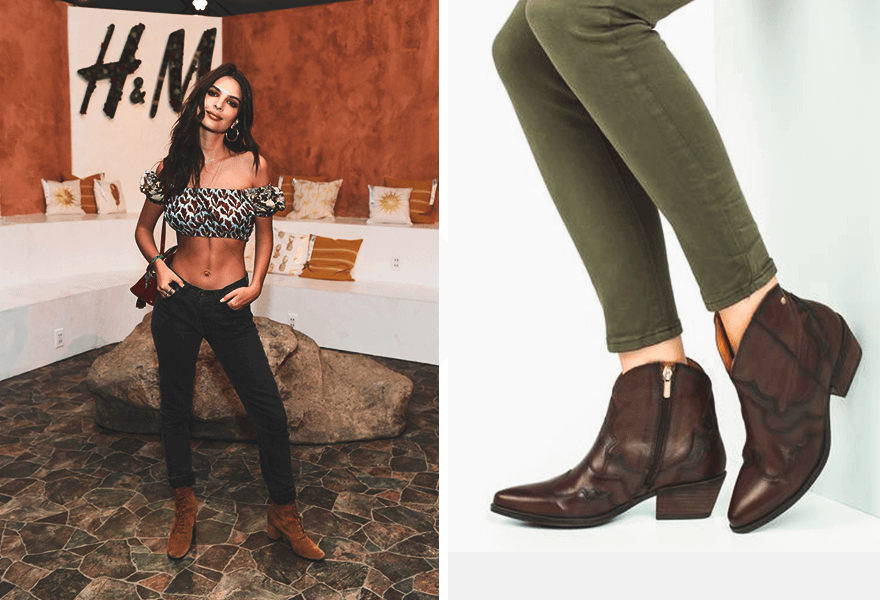 Такой наряд вполне можно надеть на романтическое свидание, вечеринку или даже на собственную свадьбу. Воздушное платье из органзы с цветочной вышивкой смотрится необычайно женственно и игриво, а удобные ковбойские сапоги на невысоком каблуке позволят активно танцевать до самого утра. Дополнить образ могут лаконичные золотистые украшения вроде серег-конго или пусетов, колье с медальоном и кольцо-перстень с крупным камнем, подобранные в цвет пуговиц.