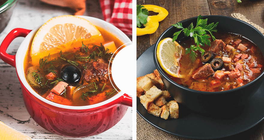 Этот густой суп готовят на крутом мясном, грибном или рыбном бульоне. Характерное блюдо русской кухни, особенно популярное во времена Советского союза, также любят и жители Восточной Германии. Удивительно, но именно там несколько лет назад поваром Андре Домке был установлен рекорд по приготовлению солянки. Вместе с командой повар приготовил 268 литров супа на основе бульона из трески.