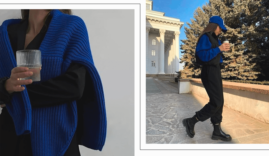 Чтобы аутфит с использованием этих цветов получился более удачным, добавь к нему аксессуары или одежду в третьем оттенке. Например, белом или желтом.