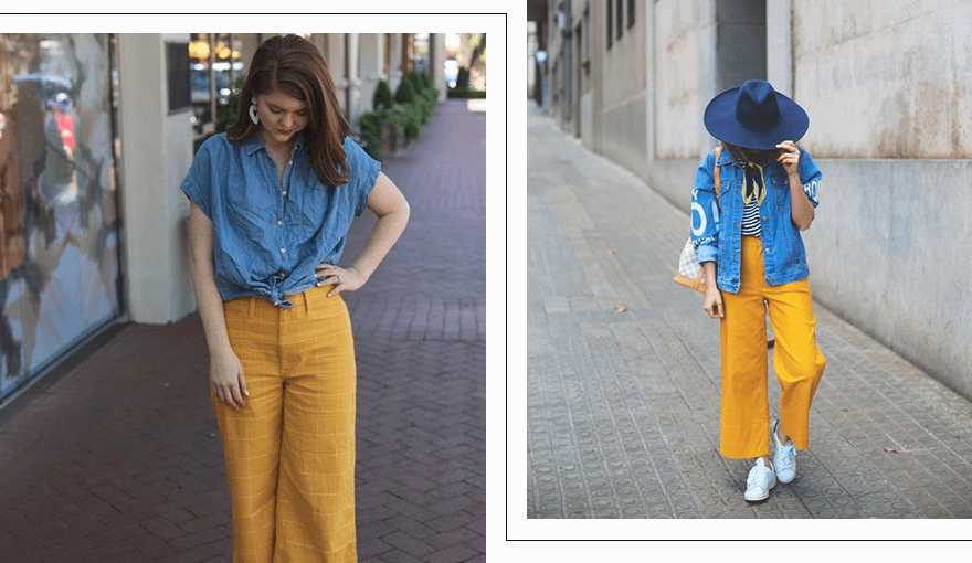 Одежду в этих цветах часто используют для создания повседневных осенних и весенних образов. Но стилисты считают, что сочетание голубого и горчичного цветов давно устарело и ассоциируется с серединой двухтысячных.