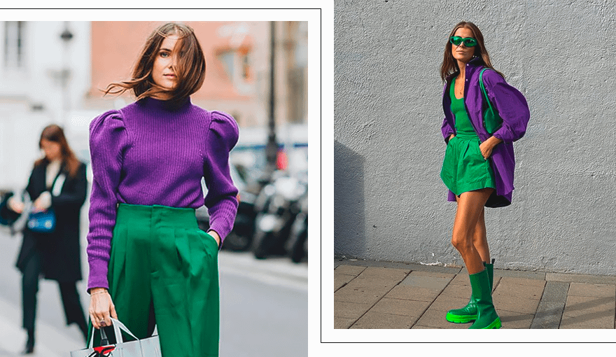 Насыщенный салатовый оттенок и не менее яркий фиолетовый долгое время оставались на пике популярности. Однако, в этом сезоне оба эти цвета уже не так популярны. Особенно если речь идет о том, чтобы сочетать их в одном образе.