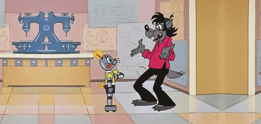 В 14 серии Волк вновь охотится за Зайцем и находит того в Доме юного техника — здесь герой сконструировал свою роботизированную копию. Хищник путает того с добычей, однако дроид оказывается не так-то прост: он одной левой справляется с Волком и вдобавок пугает зрителя своим пугающим видом.