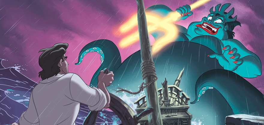 Антагонистка ленты Урсула и без того выглядит кровожадно, будто она здесь и сейчас созовет угрей, чтобы те пришли по душу обидчика. Однако в финале мультфильма ведьма оказывается куда более страшной, чем в начале: острые зубы, глаза навыкате, огромная тиара, которой можно пронзить кого угодно, да еще и медленный подъем на сушу в обличье гигантского осьминога — это ли не жутко?