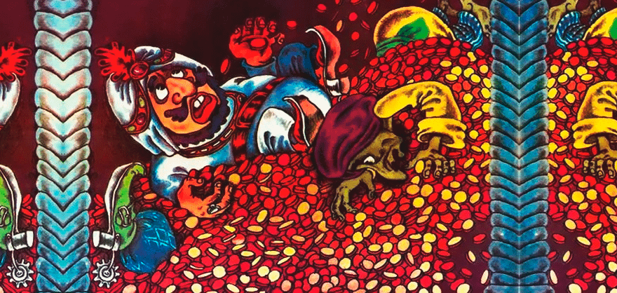 Их в один момент становится так много, что мужчина, задыхаясь под тяжестью металла, умолял антилопу прекратить высекать золото ударами копыт. Правда, он забыл, что в таком случае деньги превратились бы в глиняные черепки, а они будут несколько тяжелее небольших монет. Согласись, вид антагониста, умирающего под тяжкой ношей, — не совсем то, что хочется наблюдать, когда ты ребенок.
