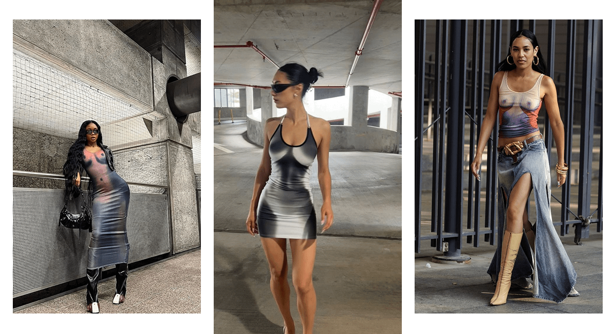Особенно в новом сезоне популярны платья, блузки и обтягивающие юбки, которые как будто прорисовывают обнаженное тело. На работу в такой одежде, конечно, не пойдешь, а вот в клуб или на фотосессию — вполне можно.