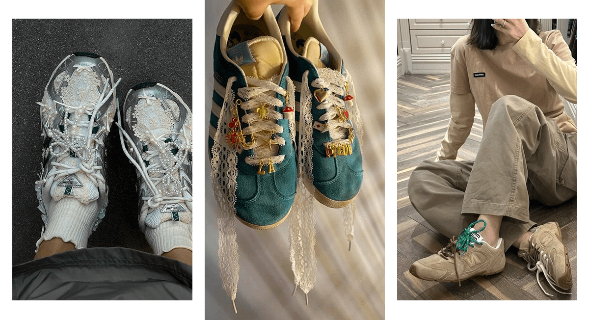 Если у тебя есть пара свободных часов, ты усидчива и склонна к творчеству, сделай стильные шнурки из бусинок или кусочков ажурной ткани. Они идеально дополнят кеды или кроссовки в винтажном стиле.