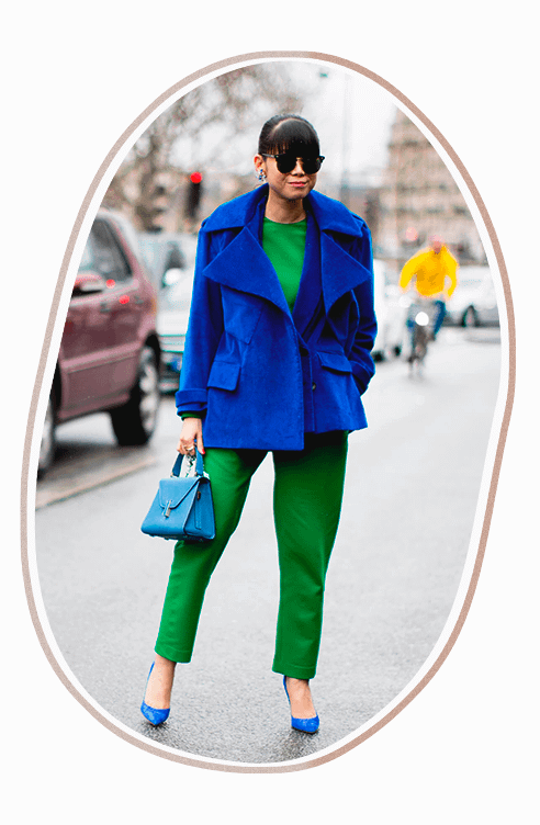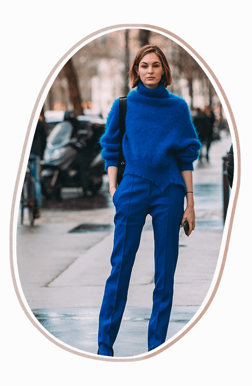 Синий цвет имеет множество оттенков: темно-синий, сапфировый, ультрамарин, электрик. Наиболее удачной комбинацией считается сочетание в образе первичных цветов: синего, красного и желтого. Классическим является сочетание оттенков синего с белым цветом. В этом сезоне сочетание насыщенного синего с оттенками зеленого – одно из самых актуальных. При этом, в одном образе важно сочетать тона равной интенсивности и яркости.