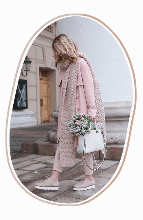 В этом сезоне осень-зима стилисты рекомендуют сочетать нежный розовый с насыщенными темными цветами и мягкими нейтральными оттенками из классической палитры. В тренде монохромные пудровые образы и аутфиты, сочетающие розовый и яркий оранжевый цвета.