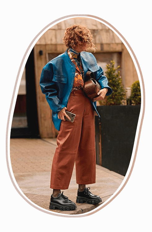 В этом сезоне дизайнеры рекомендуют сочетать оттенки терракотового с ярким синим цветом, оттенками бежевого и хаки. Особенно выгодно выглядят шерстяные, вельветовые и кожаные вещи в терракотовом цвете.
