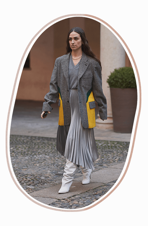 В этом сезоне сочетание серого цвета с оттенками желтого стало самым популярным – именно их Pantone назвали главными цветами 2021 года. Помимо сочетания в одежде, смесь теплых и холодных оттенков серого и желтого удачно вписывается в интерьер, макияж и дизайн ногтей.