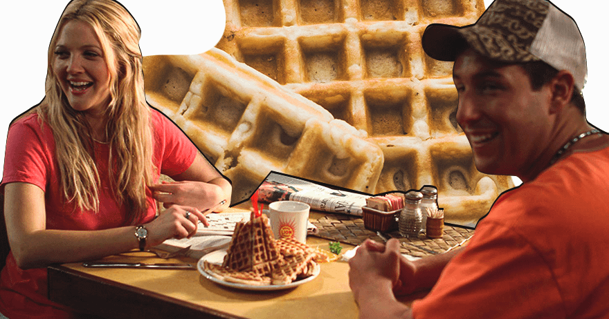 Генри из ленты «50 первых поцелуев» день за днем ухаживал за Люси, потерявшей память. Каждый день она в одиночестве сидит в кафе, тщательно создавая дом из вафель, после чего мужчина «знакомится» с ней и присоединяется к строительству — почему бы не повторить милую сцену?Понадобятся зубочистки и уже готовые бельгийские вафли — вы можете испечь их сами, заказать в кофейне или купить в ближайшем супермаркете.