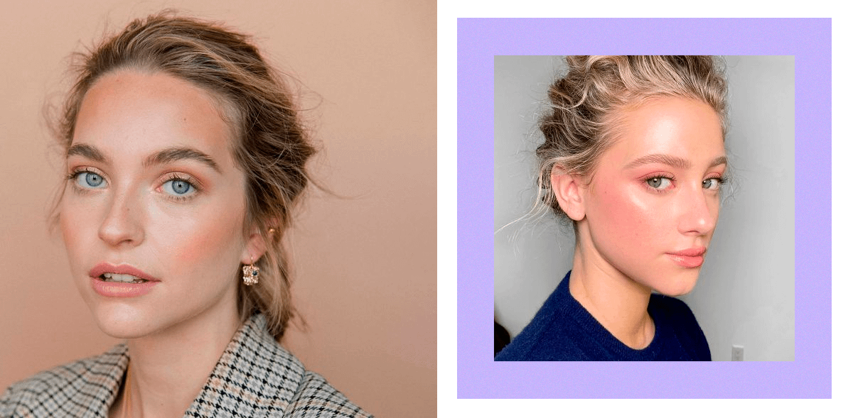 Особенность такого мейка в сияющей коже, легком румянце и открытом взгляде. Добиться эффекта можно с помощью сухих мерцающих теней в нюдовых оттенках. Лучше всего для такого образа подходят средства на водной основе. Они хорошо держатся на коже, но не создают ощущения тяжести. Губы должны быть увлажнены, но не слишком выделяться. От карандаша или теней для бровей можно отказаться. Достаточно уложить волоски бесцветным гелем.
