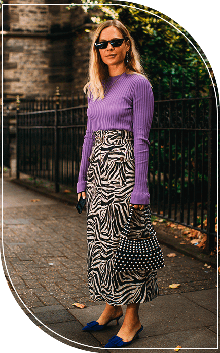 1. Юбка макси с принтом в сочетании с однотонным верхом