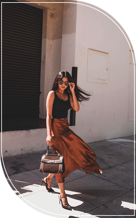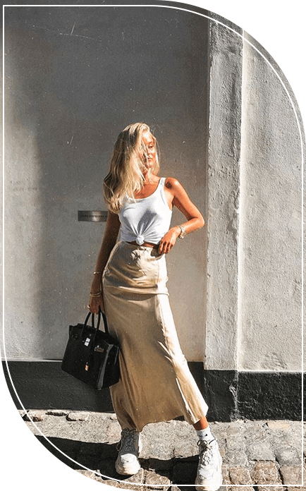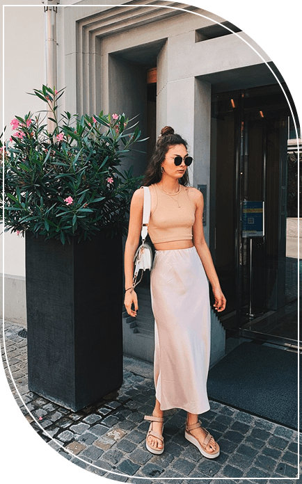3. Шелковая юбка в одном образе с базовым топом