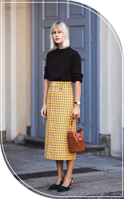 Чтобы визуально вытянуть образ, отдавай предпочтение юбкам прямого кроя с высокой посадкой. В качестве аксессуаров используй базовую сумку и обувь в тон ей — так ты не перегрузишь образ. О том, какие еще джинсовые вещи актуальны в этом сезоне, читай в этом материале.