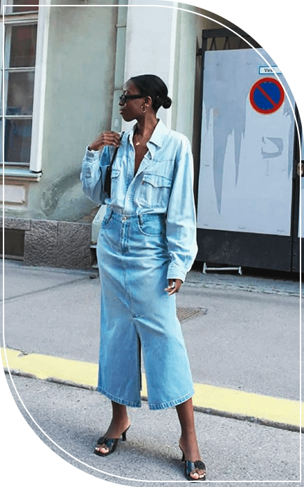 2. Джинсовая юбка макси в образе total denim