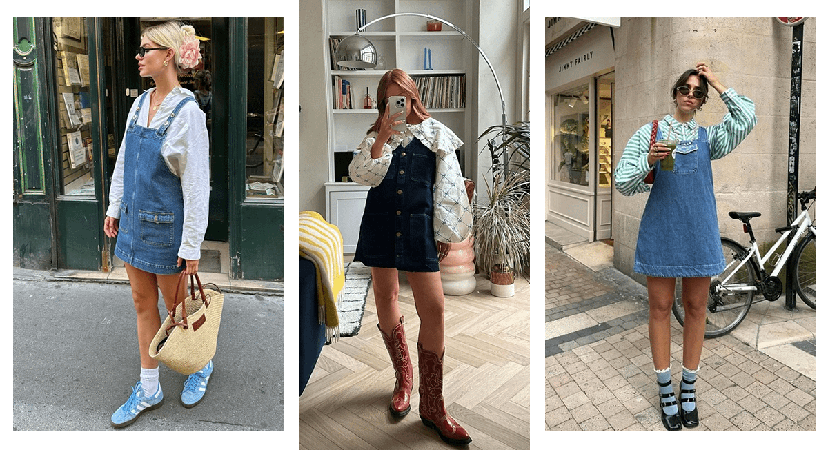7. Джинсовый комбинезон с юбкой и акцентная блузка