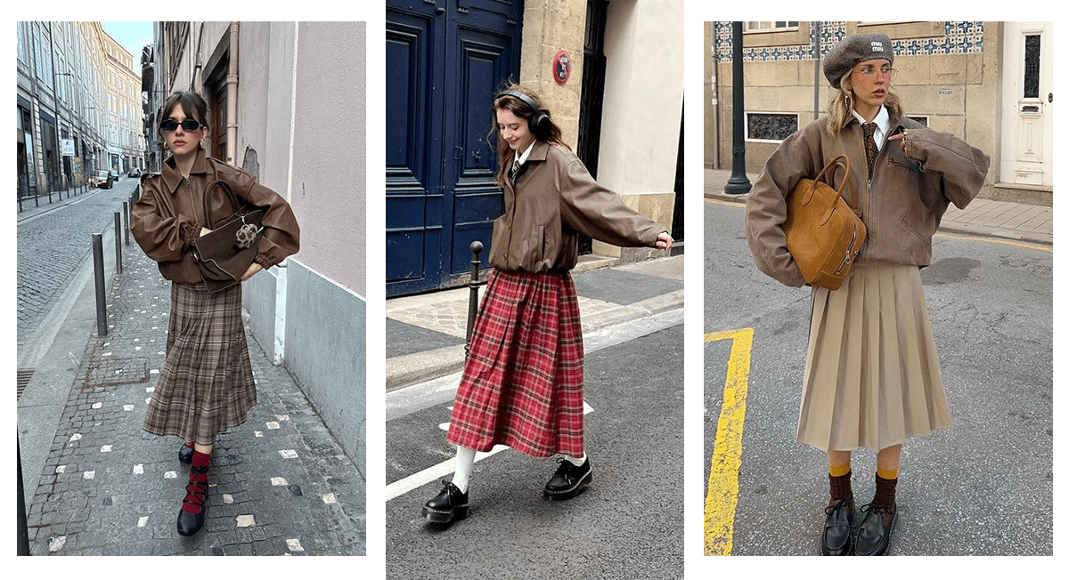 Когда на улице станет чуть прохладнее и захочется утеплиться, отложи в сторону старый кардиган. Отправься в секонд-хенд или поищи на маркетплейсах куртку в винтажном стиле — она может быть из кожи, плотного хлопка, замши. Используй вещь для создания стильных преппи-образов.