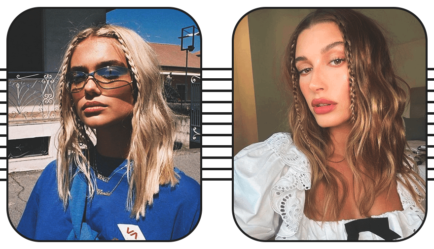Маленькие косички у лица — еще один простой и актуальный способ освежить образ. Такая прическа идеально подойдет для вечеринки или прогулки у пляжа.
