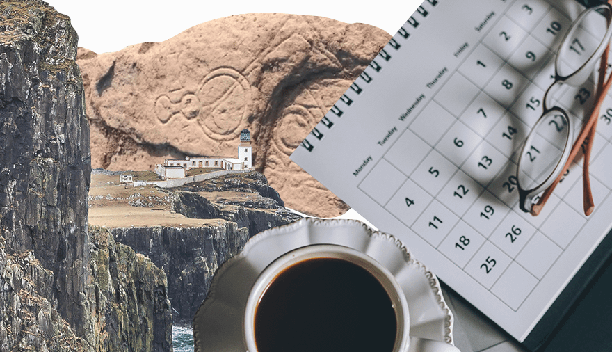 Во все эпохи люди старались следить за датой и временем. Археологи, работающие в Шотландии, обнаружили то, что они считают старейшим в мире лунным календарем — серию из 12 больших ям особой формы, которые были спроектированы так, чтобы имитировать различные фазы Луны.