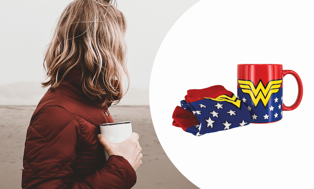 DC Comics выпустил набор истинной чудо-женщины, чтобы дать возможность каждой девушке почувствовать себя частью этой вселенной. В него входят дизайнерская кружка, похожая на культовый щит чудо-женщины, и носки супергероини для перевоплощения, которые сделают твой перерыв на чай или кофе еще более захватывающим. Такой подарок отлично подойдет для любителей комиксов, фильмов и сериалов медиафраншизы DC.