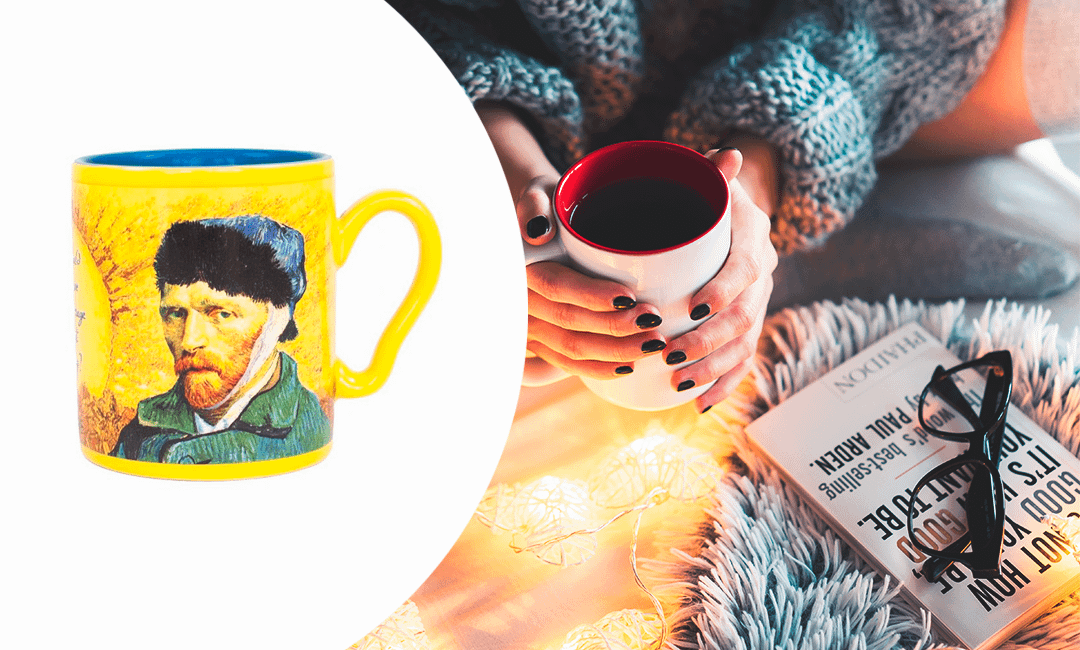 Изменяющаяся кружка Ван Гог станет удачным дополнением к любому чаепитию и самым ярким и творческим акцентом среди кухонных аксессуаров. В ее дизайне оригинально обыграна история потерянного уха художника, где на фоне сияющего солнца из картины «Сеятель» изображен сам Ван Гог. При добавлении в кружку горячей воды ухо Ван Гога исчезает, а вместо него моментально появляется повязка, известная многим по его автопортретам. Благодаря забавному сюжету и презентабельной упаковке, чашка Van Gogh может стать нетривиальным подарком для художников, дизайнеров и других ценителей искусства, которые любят совершать чайный ритуал в течение дня.