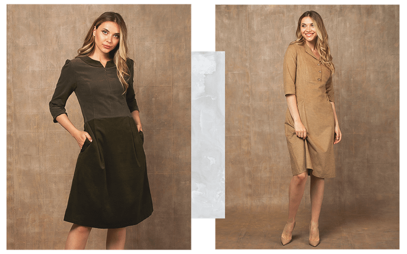 Микровельвет — очень приятная на ощупь и достаточно теплая ткань, а еще она прочная и хорошо сохраняет цвет. Платья из такого материала комфортны для тела и шикарно выглядят в любом оттенке. Для работы выбирай модели с воротником, на пуговицах и длиной ниже колена в карамельном, сером или черном цветах. А платье с запахом в цвете бургунди, самого актуального осенью оттенка, с разрезом и декольте идеально подойдет для вечернего образа.