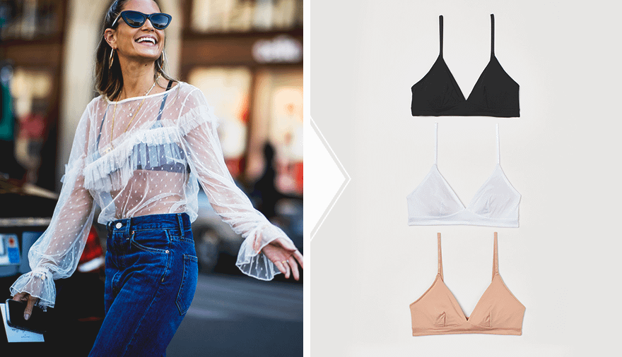 Полупрозрачные блузки в идеале сочетаются с бельем телесного цвета. А вот белье белого цвета, несмотря на устоявшееся ошибочное мнение, носить с цветной или полупрозрачной одеждой не рекомендуется.