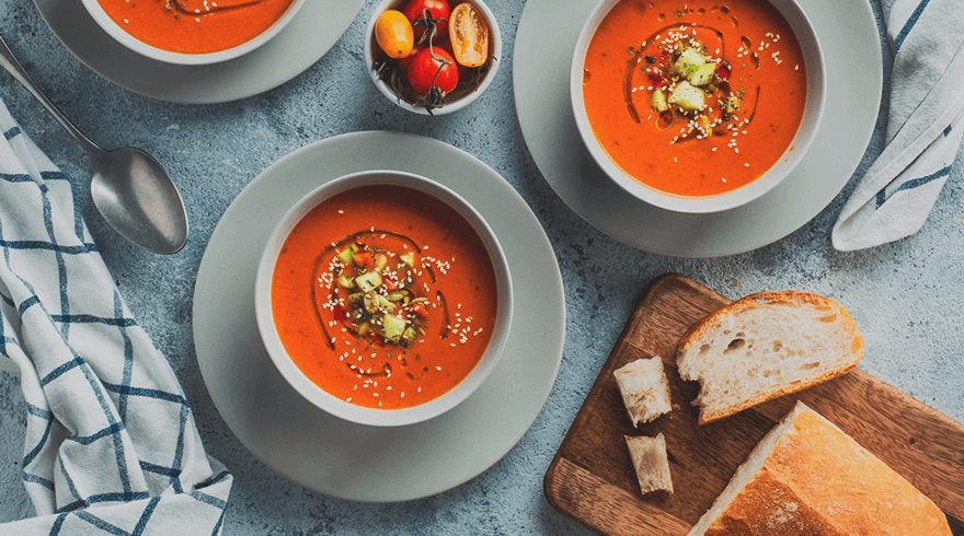 Невозможно говорить о холодных супах, не вспомнив о гаспачо — испанском традиционном блюде из тертых овощей, которое едят в жаркое время года. Один из лучших рецептов можно найти у талантливейшего повара планеты — Гордона Рамзи. В гаспачо чаще всего не содержатся продукты животного происхождения, поэтому его могут есть веганы и вегетарианцы.