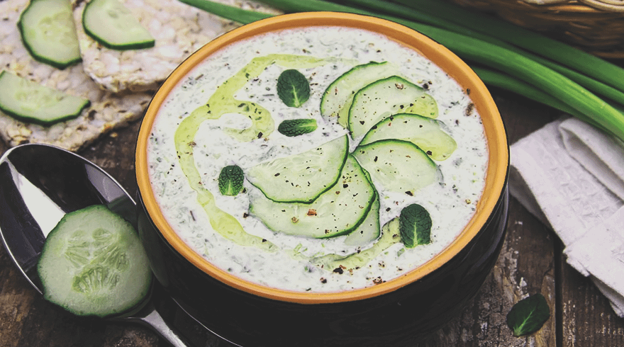 Благодаря натуральному и полезному греческому йогурту этот кремообразный суп освежает и дарит прохладу. Подавать его можно с гренками, чтобы текстура блюда была хрустящей.