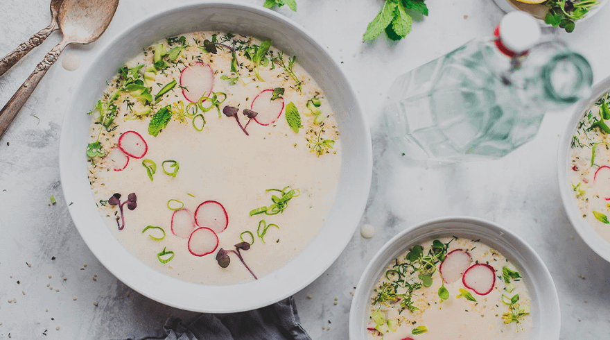 Крем-суп из базилика с кукурузно-огуречным салатом