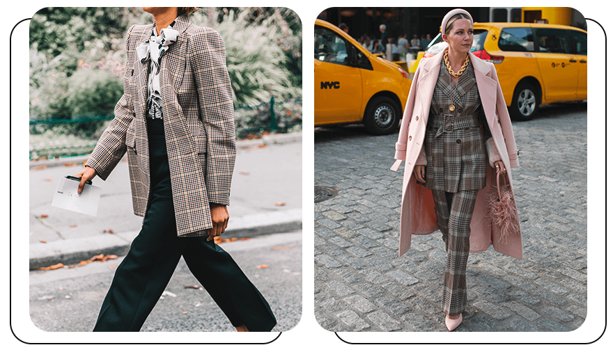 Долгое время одежду с таким принтом носили только мужчины. Чаще всего это были костюмы-тройки и пальто прямого кроя. Но сегодня клетку Глен используют для создания и женской одежды. Например, уже классических оверсайз жакетов и брюк с высокой посадкой. Носить одежду с таким принтом рекомендуем в образе с однотонными базовыми вещами.