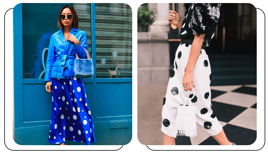 Например, в тренде принт, сочетающий в себе и крупный, и мелкий горох. Это может быть как вечернее платье, так и яркая юбка в пол. Не менее эффектно выглядят вещи, украшенные пайетками в форме горошка. Они идеально подходят для создания вечернего образа в сдержанном классическом стиле.
