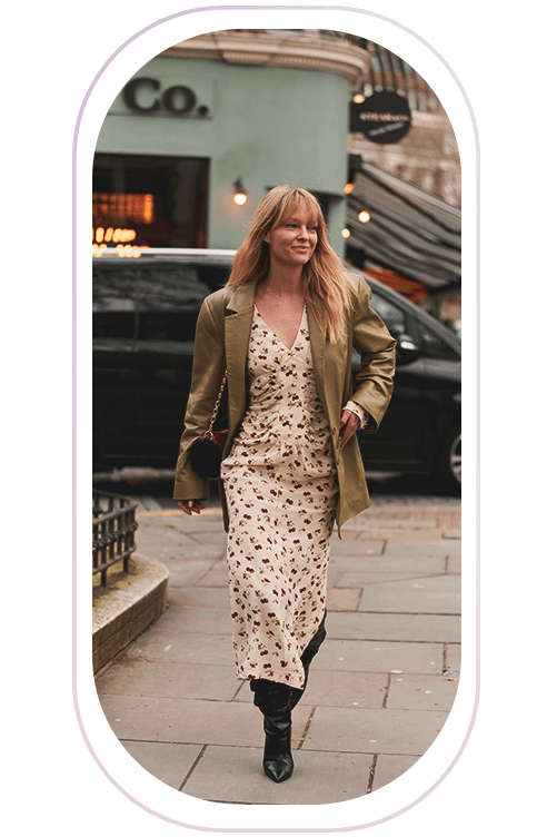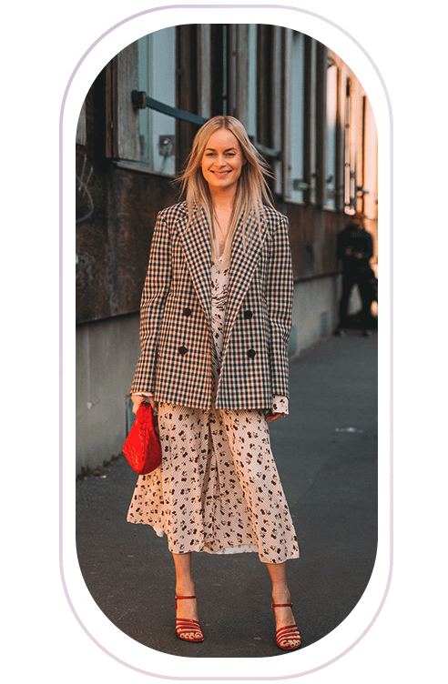 Этой весной стилисты решили совместить практичность и женственность в одном образе. Они предлагают сочетать между собой струящиеся платья и оверсайз пиджаки, чтобы создать нежные, но при этом многофункциональные аутфиты. Если тебе этот тренд по душе, отдавай предпочтение удлиненным струящимся платьям. Актуальны как однотонные модели, так и одежда с яркими принтами.