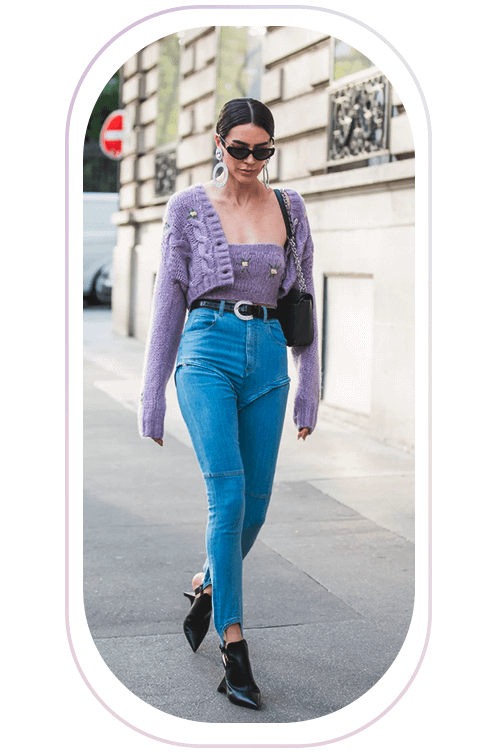 Самые смелые могут носить трикотажные кардиганы на голое тело и сочетать их с трендовыми джинсами на низкой посадке. Более универсальный вариант — сочетание в одном образе базовой майки или футболки, трикотажного кардигана и брюк с высокой посадкой.
