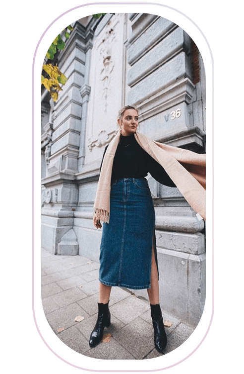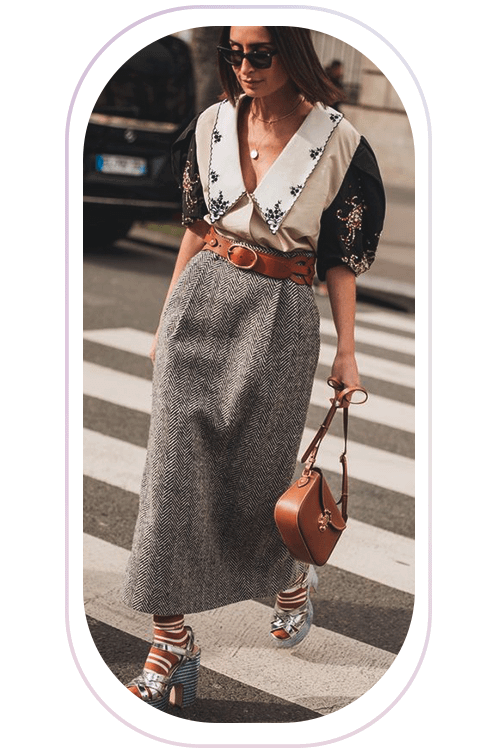 Особенно актуальны юбки длины миди из экокожи, твида, денима и других плотных тканей. Предпочтение отдавай не только базовым цветам, но и более ярким оттенкам: зеленому, синему, оранжевому и лавандовому. А чтобы сделать образ более хрупким и нежным, выбирай юбки с завышенной талией и дополнительно подчеркивай эту область широкими акцентными ремнями.