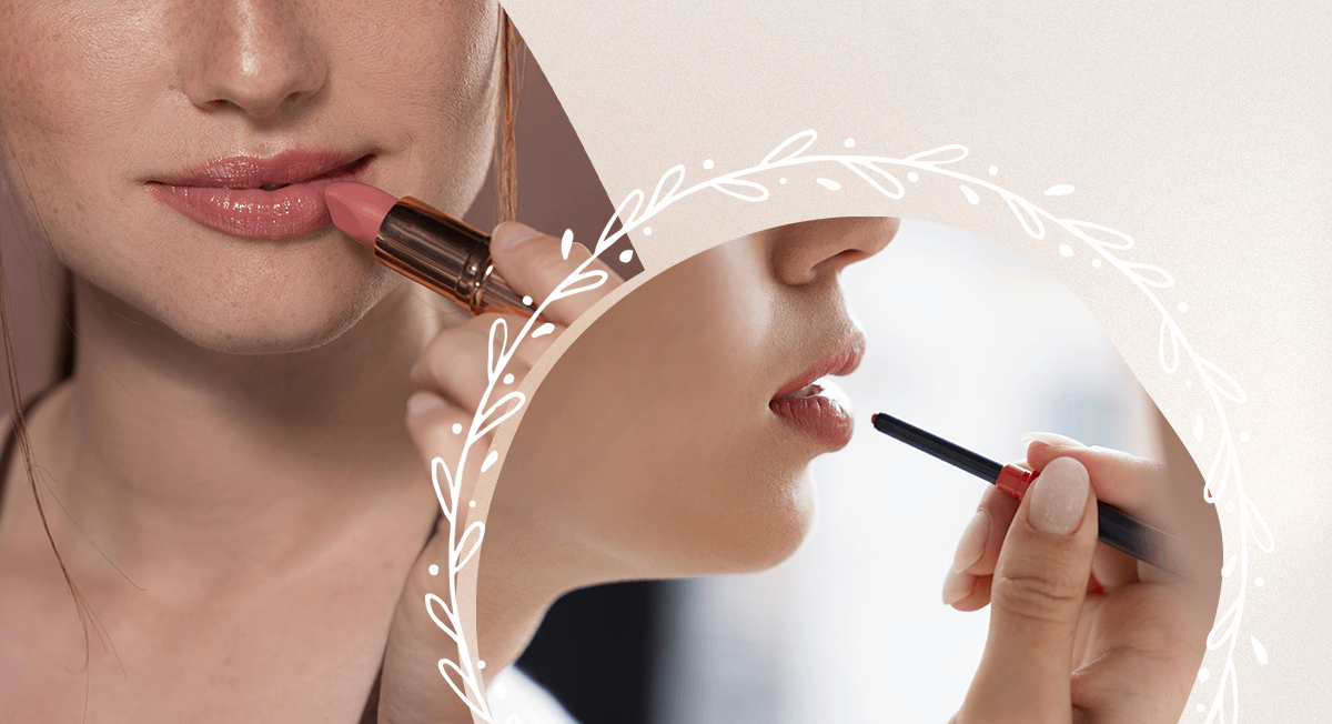 Возьми карандаш для губ в пастельном оттенке, подходящем твоему тону кожи, и помаду примерно в том же цвете. Сначала аккуратно прорисуй границы карандашом и слегка растушуй его внутри. Заполни основную часть губ помадой и убери излишки продукта сухой салфеткой.