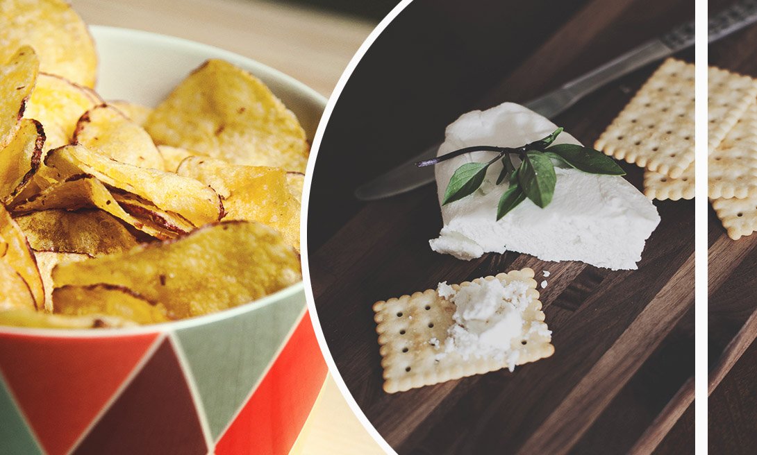 Здоровая замена для закусок — фрукты, овощи, цельнозерновые крекеры с нежирным сыром.