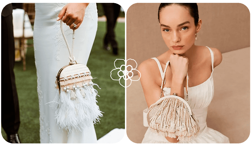Благодаря тому, что невеста всегда окружена заботливыми подругами, ей не приходится носить с собой большую сумку. Но маленький ридикюль для хранения помады или салфеток все же пригодится.