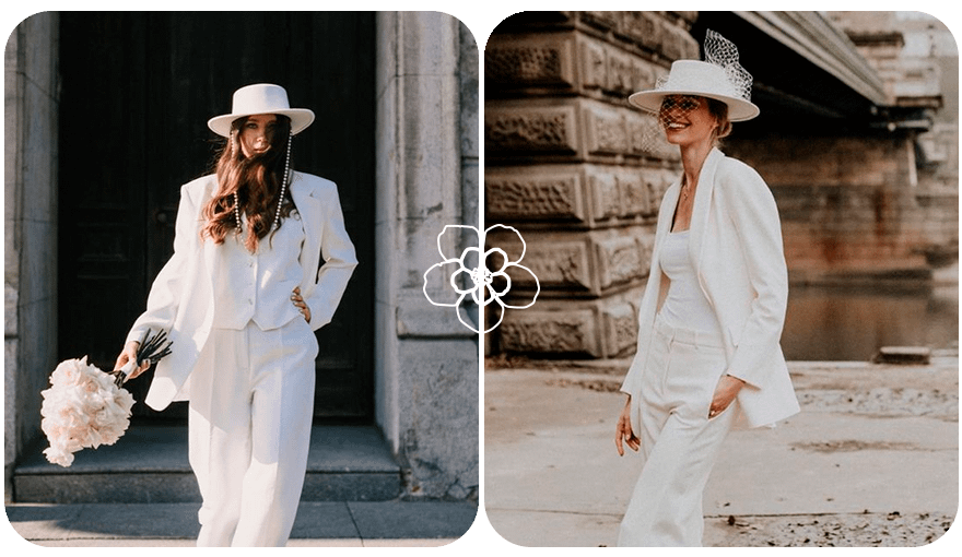Идеально такой аксессуар подойдет девушкам, которые вместо белого платья на торжество решили надеть костюм-тройку. Дерзкий и смелый образ рекомендуем и тем, кто хочет сделать свадебную фотосессию на фоне городских пейзажей и архитектуры.