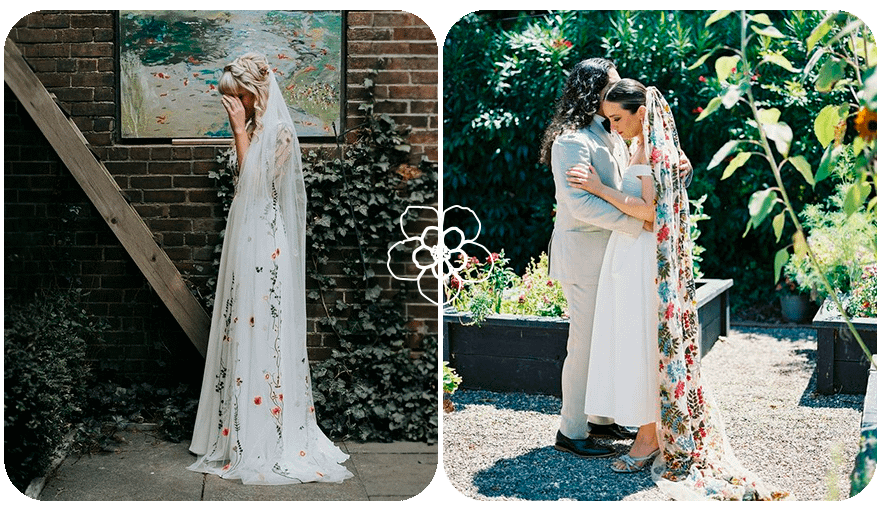 Теперь стилисты рекомендуют обратить внимание на более яркие варианты фаты, украшенные вышитыми вручную цветами. Они могут быть как крупными, так и мелкими и более раскидистыми. Сочетать такой вид фаты лучше всего с минималистичным платьем — тогда образ получится гармоничным.