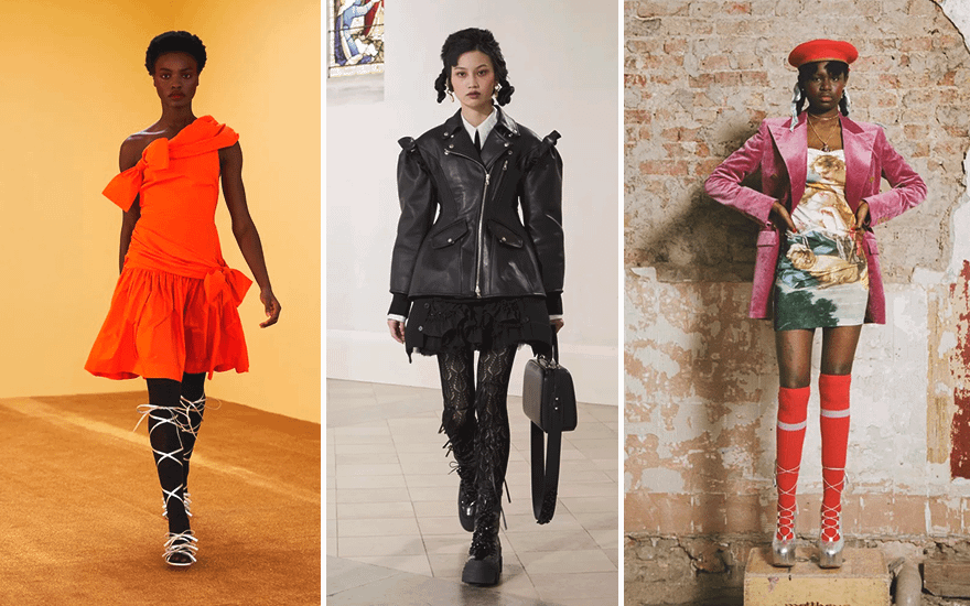 Балетная эстетика продолжает притягивать дизайнеров, которые ищут все новые неочевидные способы использовать ее в своих работах. В коллекциях Molly Goddard, Simone Rocha, Vivienne Westwood были сандалии и сапоги на высокой шнуровке, отсылающие к пуантам.