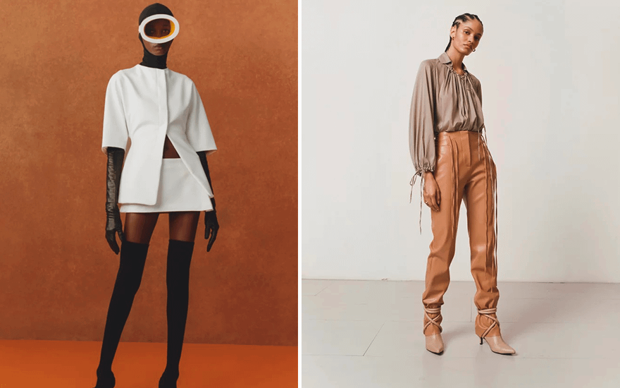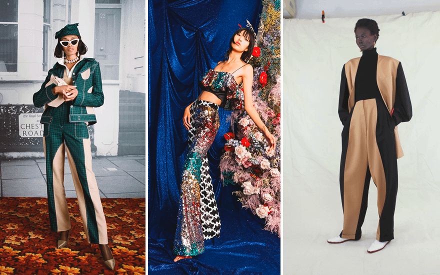 Еще один тренд с лондонской Недели моды – брюки из двух цветов или даже двух принтов. На подиуме было достаточно расслабленных брючных костюмов и брюк клеш. Разнообразие в уже привычные силуэты вносят оригинальные цветовые решения. Двухцветные костюмы появились в коллекциях Roksanda, Tolu Coker. А Halpern представил сверкающий диско-наряд из топа и брюк, в которых одна штанина была с черно-белым принтом, а другая с радужным.