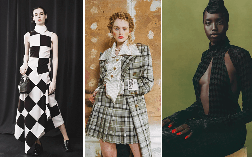 Самой свежей клеточной тенденцией стали наряды с принтом арлекина. Maximilian представил облегающее платье с глубоким декольте и рисунком из контрастных ромбов. Традиционный персонаж итальянской комедии сегодня вдохновляет многих. К примеру, Эмма Коррин, использовала этот образ, выбирая платье для «Золотого глобуса». Дизайнеры Miu Miu создали для актрисы платье с массивными плечами и объемным воротником.