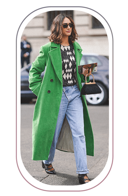 Укороченные пальто хорошо сочетаются в одном образе с юбками плиссе, базовыми джинсами и легкими платьями. Чтобы сделать образ более женственным, пальто сочетай с обувью на высоком устойчивом каблуке и яркими аксессуарами. Например, сумкой необычной формы и кольцами с крупными камнями.