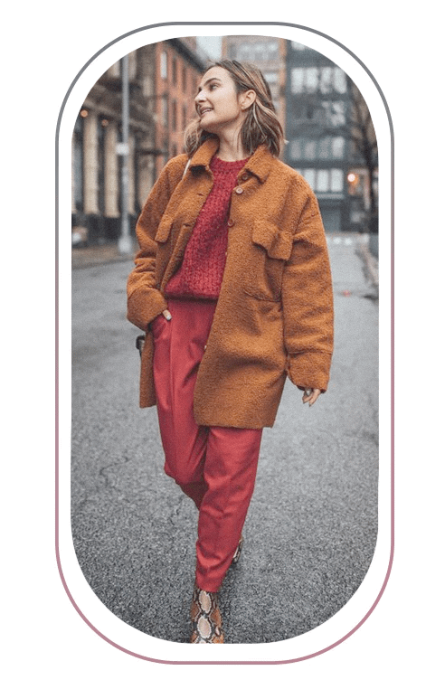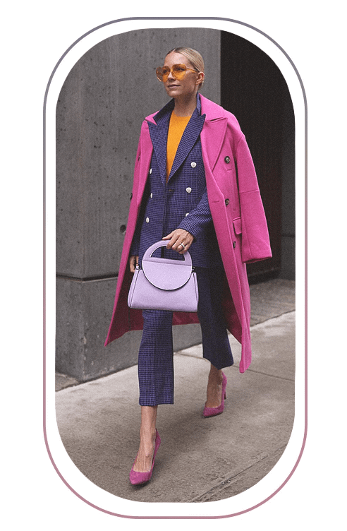 Сочетать яркие пальто прямого кроя рекомендуем с одеждой в классическим стиле. Это может быть как базовый костюм-двойка в сером или черном цветах, так лаконичное яркое платье из шелка или более плотного материала. В качестве аксессуаров используй очки с цветными линзами и сумки необычной формы.