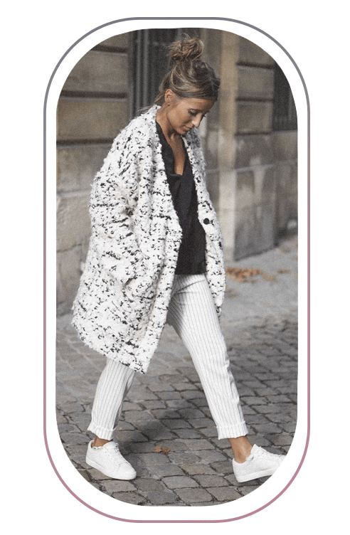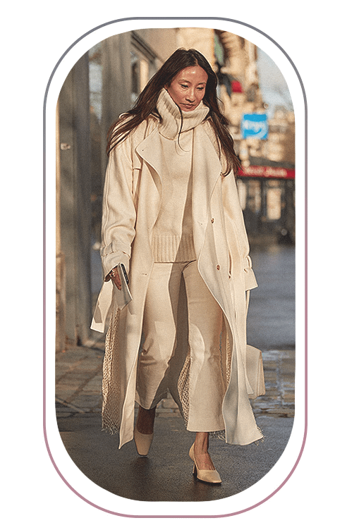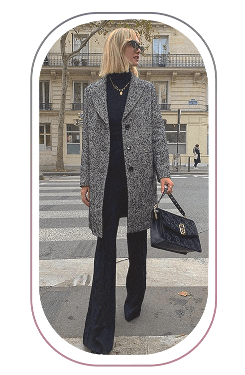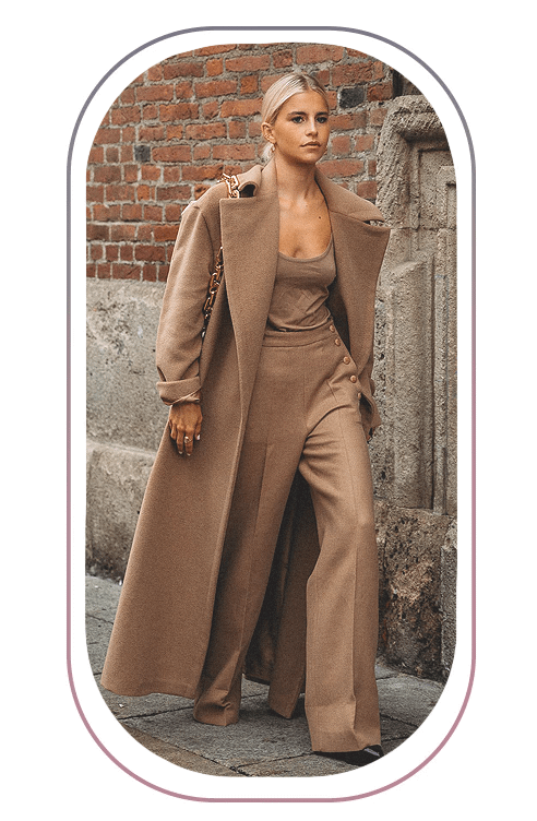 Если хочешь дополнительно визуально вытянуть фигуру, составь монохромный образ. Например, пальто бежевого цвета сочетай с базовыми брюками прямого кроя и боди примерно этого же оттенка. В качестве аксессуаров используй сумки и очки черного или темно-коричневого цветов.
