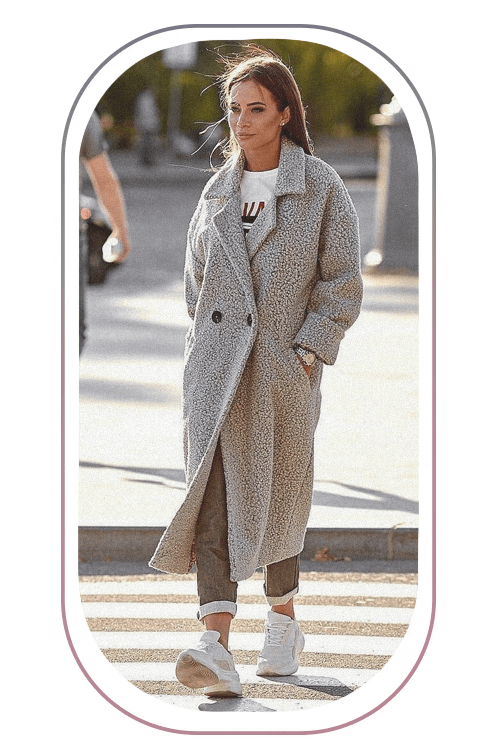 Этой осенью в моде удлиненные пальто-букле свободного кроя. Если ищешь универсальную верхнюю одежду, предпочтение отдавай моделям черного, серого или бежевого цветов.