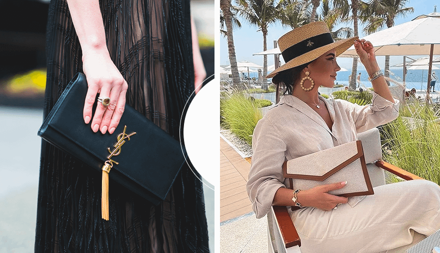 Носить классический клатч без ручки мы рекомендуем в руках. Так как в него вряд ли поместятся тяжелые предметы, никакого дискомфорта это тебе не доставит. А вот от привычки носить сумочку под мышкой стоит отказаться.