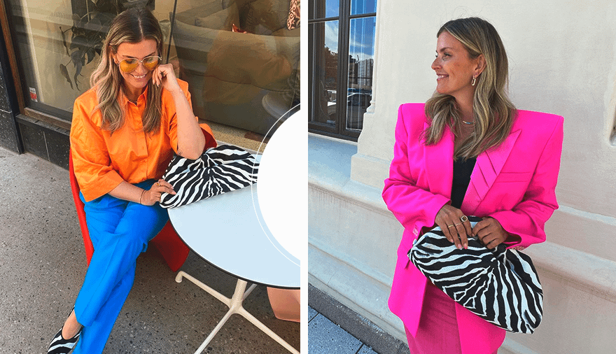 Если хочешь создать яркий образ, в качестве аксессуара используй трендовый клатч с животным принтом. Особенно актуальны бесформенные тканевые сумки-клатчи с принтом зебра. Они хорошо сочетаются с яркими брючными костюмами и однотонными платьями.